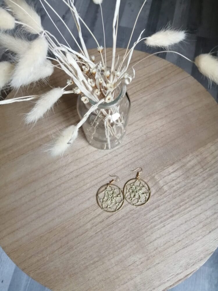 Les boucles d’oreilles « LAURA » seront du plus bel effet avec leur fil brillant. Elles sont faites à la main au crochet au cœur de la Provence