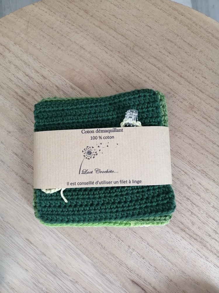 Cotons démaquillants « NOA » carrés (lot de 6) faits à la main au crochet en France